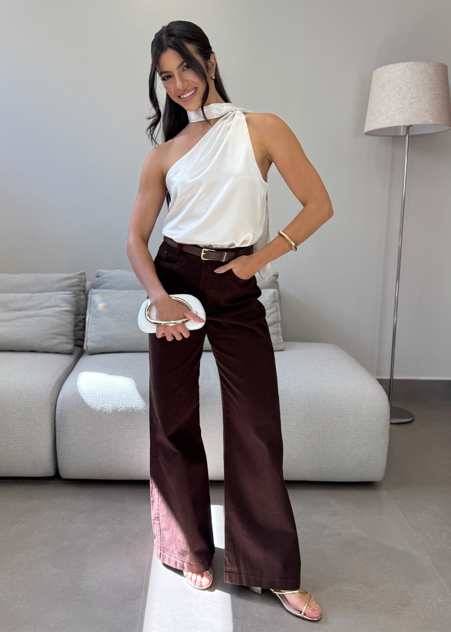A Blusa Kim, possui modelagem nula manga, forro e gola alta que contorna o pescoço, criando um visual belíssimo na blusa. Com tecido acetinado e toque macio, combina perfeitamente com jeans, alfaiataria, resultando uma peça versátil no seu guarda-roupas.