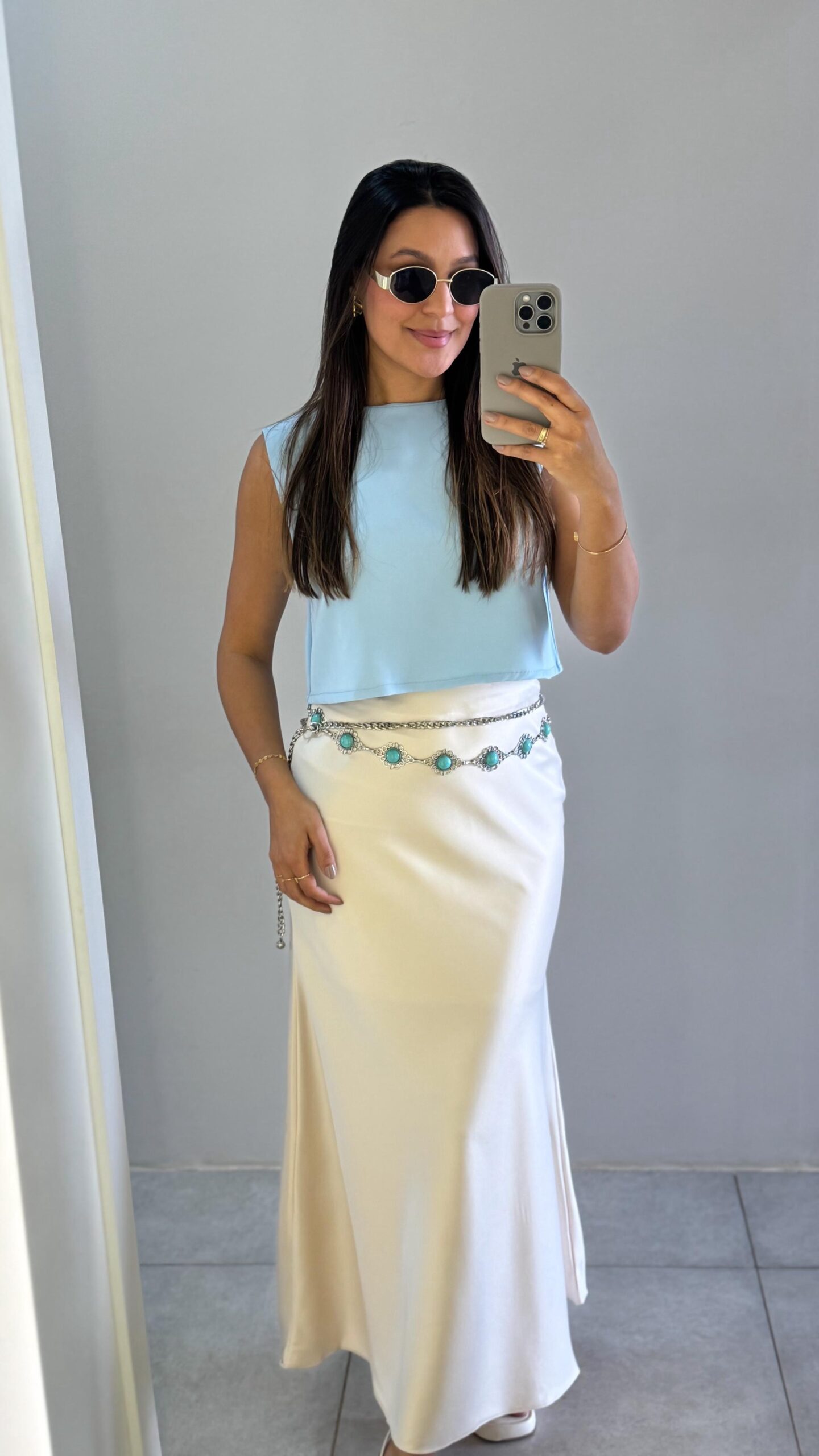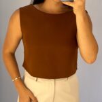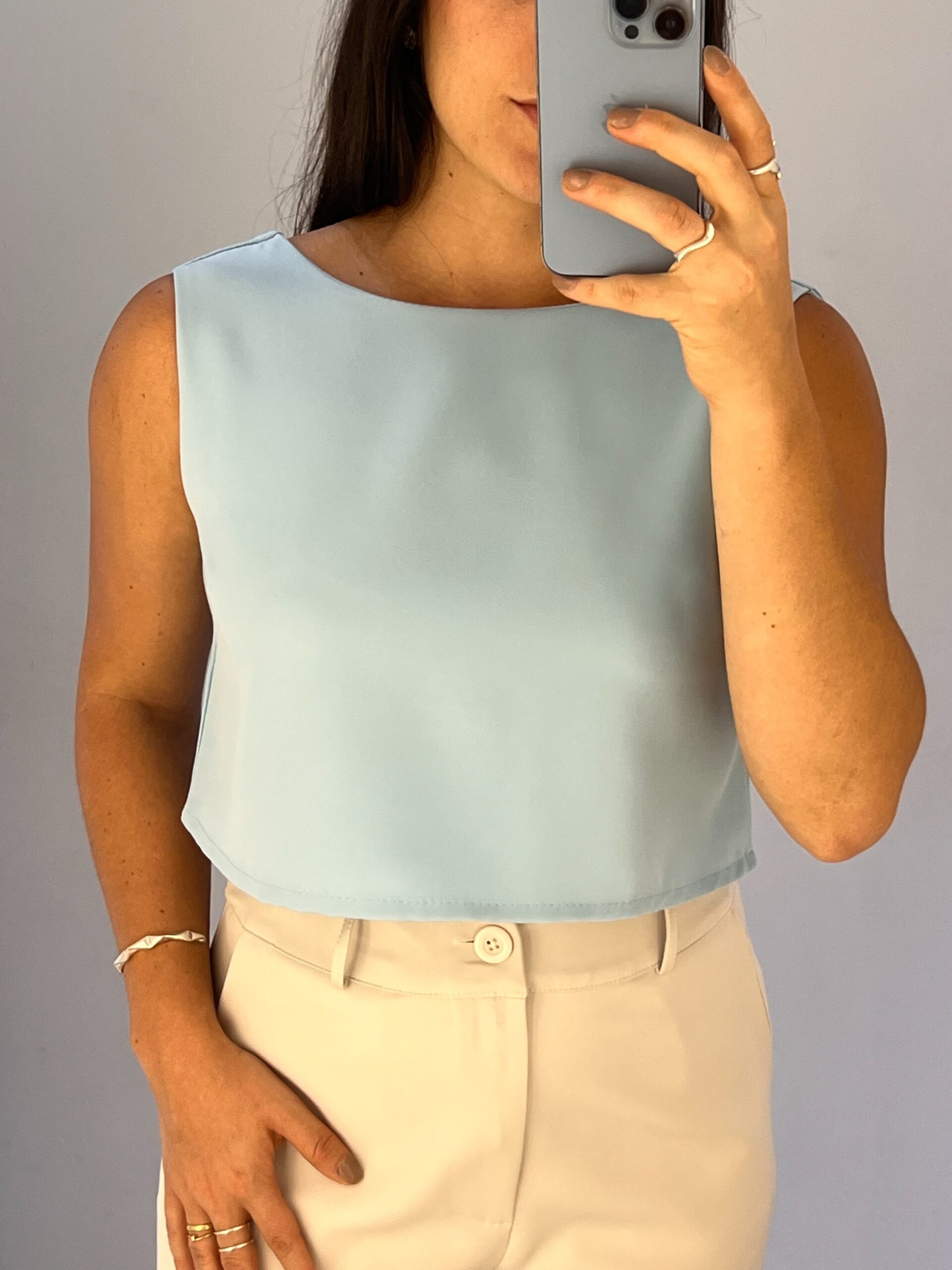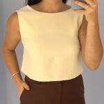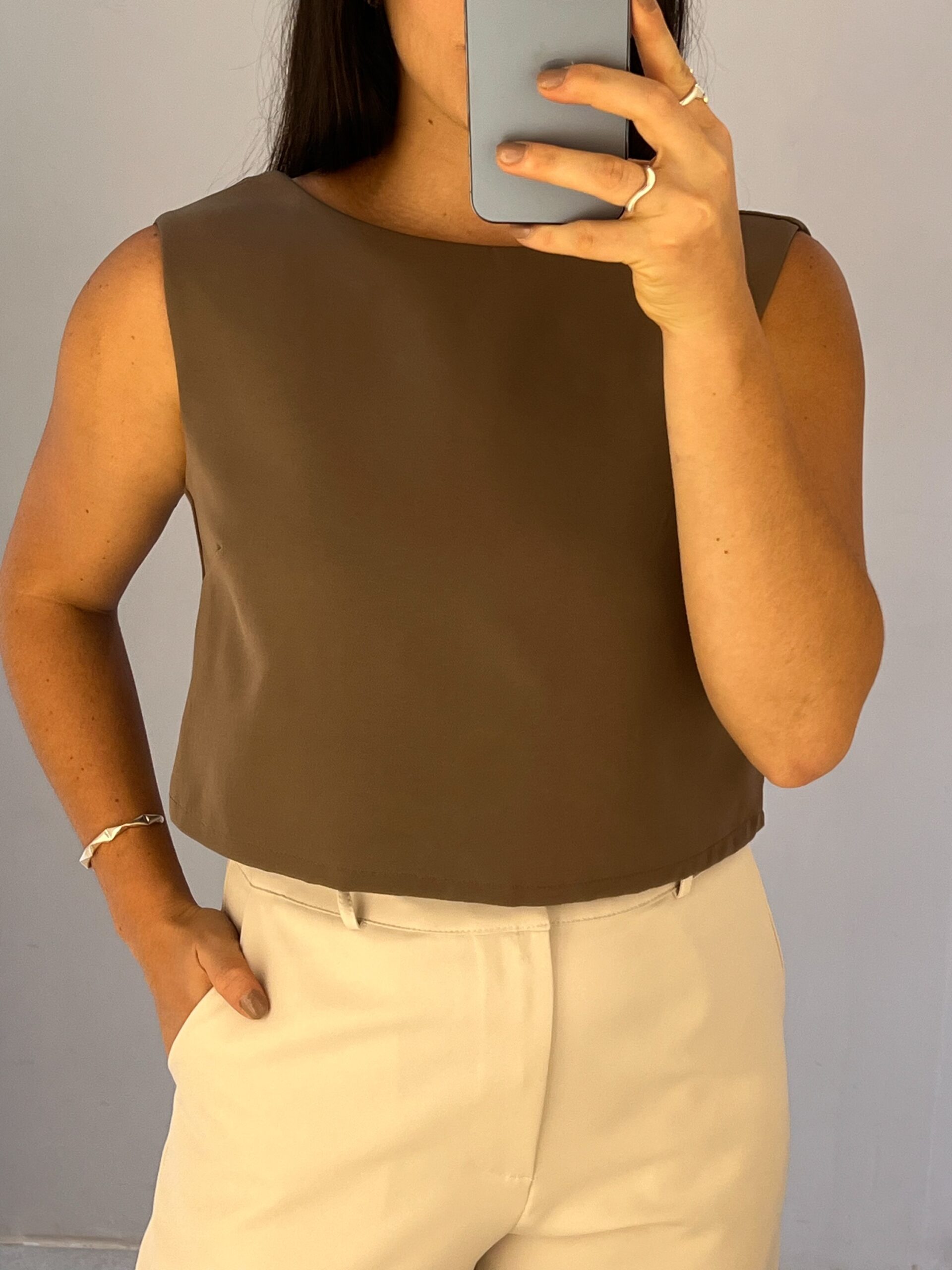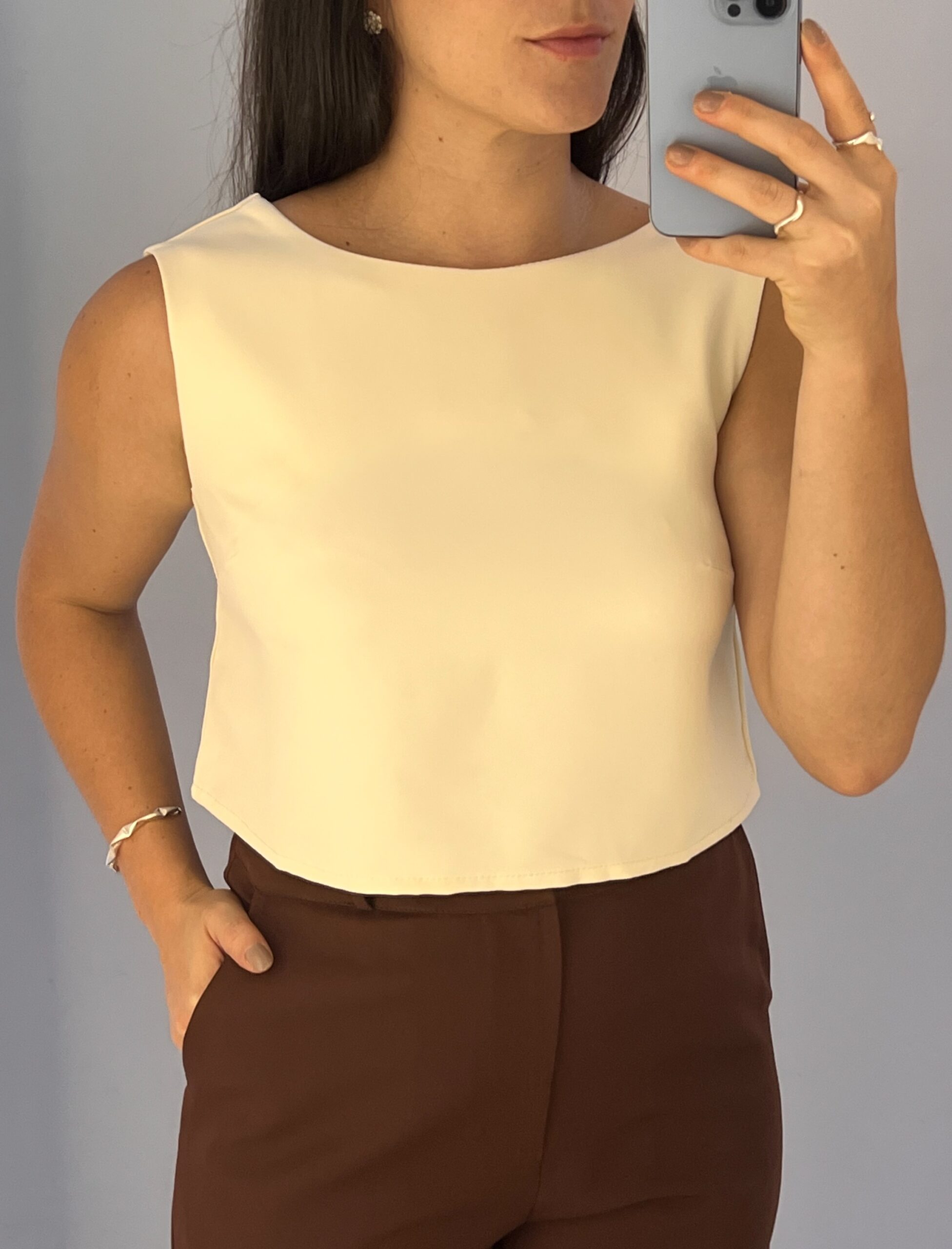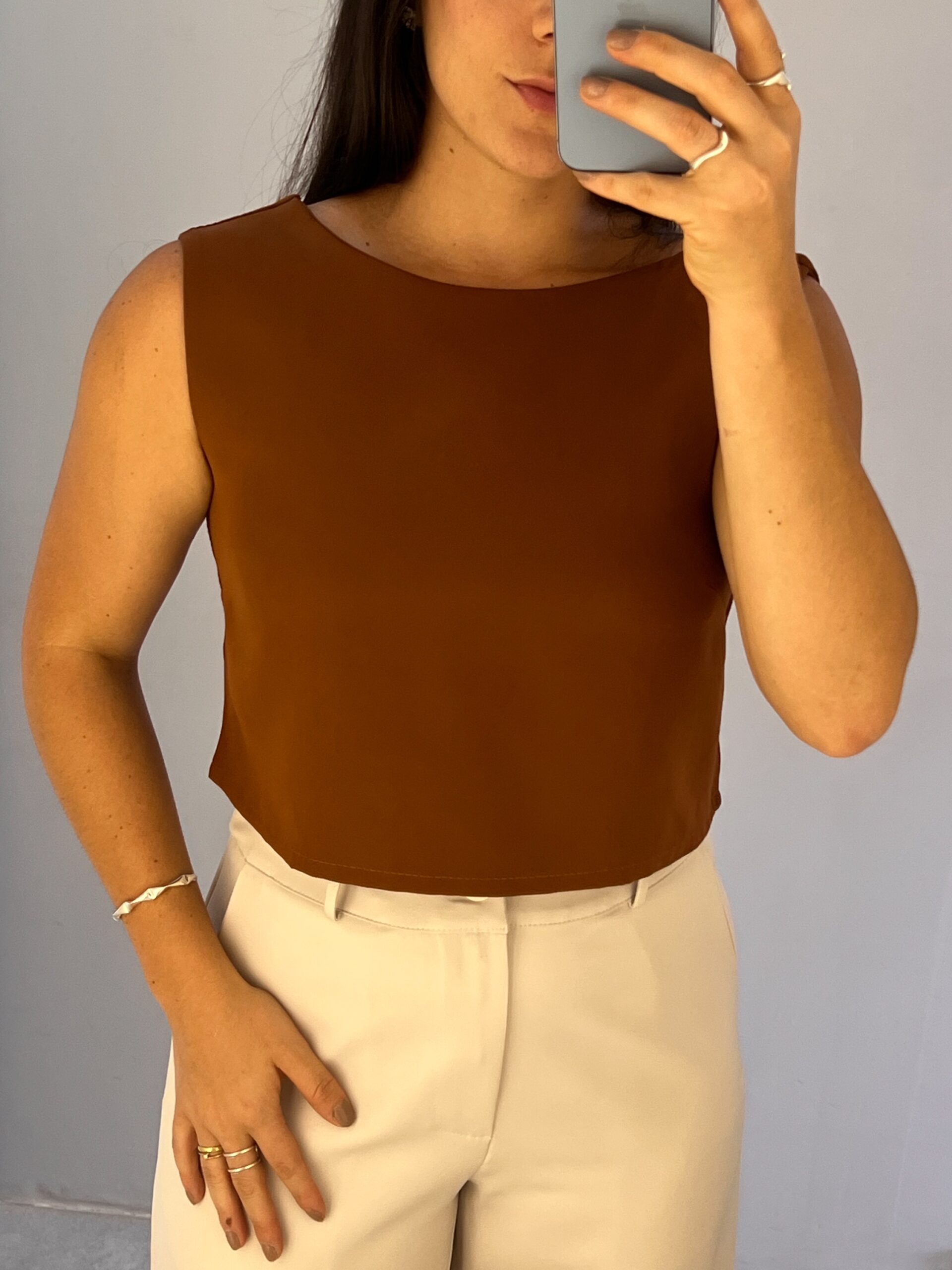 O Cropped Mari é aquela peça coringa que deixa qualquer look mais estiloso. Com uma modelagem reta, decote redondo e amarração nas costas, ele garante um caimento impecável. Feito em um tecido estruturado que não marca e valoriza a peça, é perfeito para usar com calças de cintura alta, saias ou até com sobreposições de camisas e blazer. Disponível em cores fácies de combinar, vai ser seu novo queridinho!
