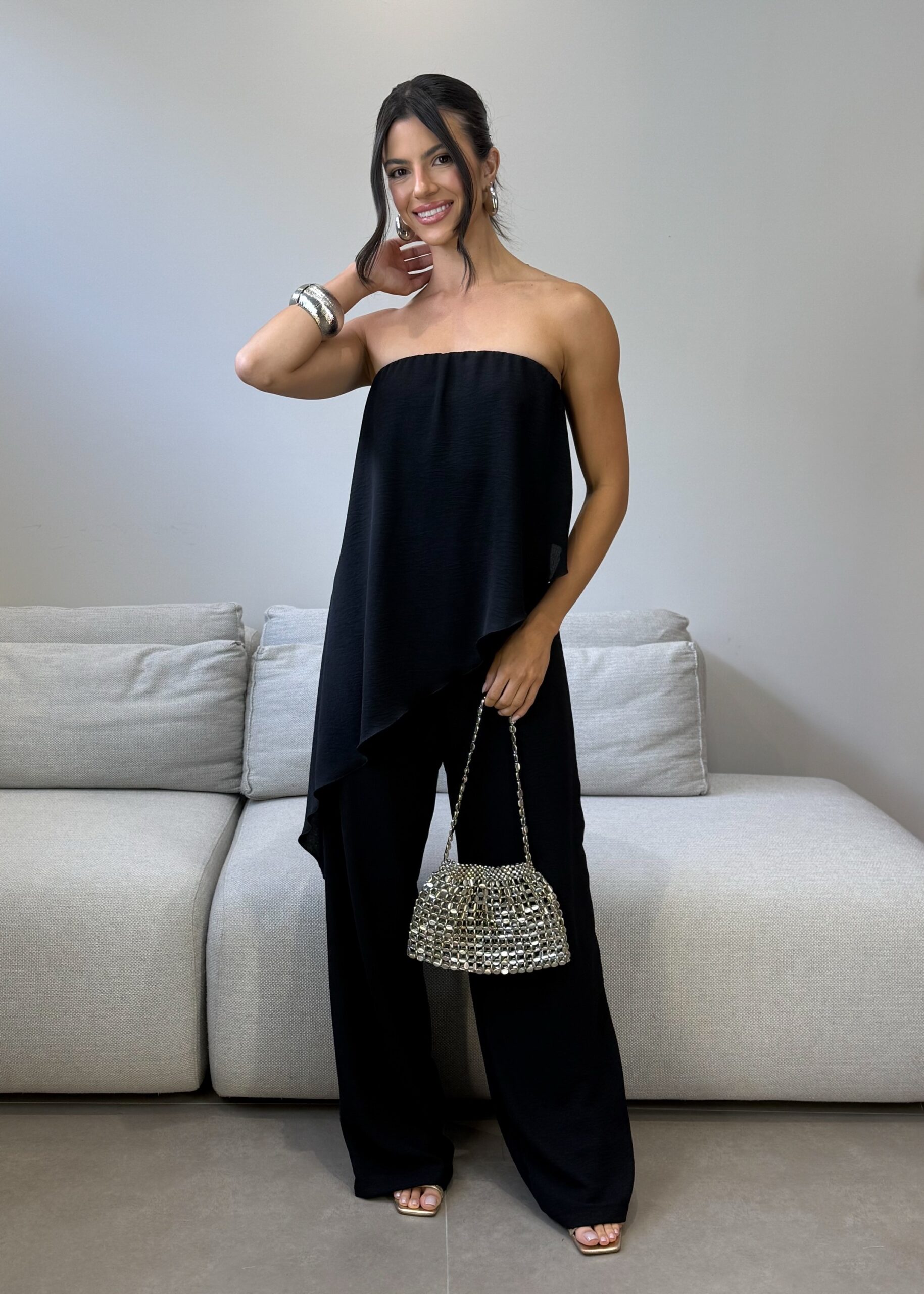 O Macacão Marina é aquela peça impacto que transforma qualquer ocasião em um omento especial. Com uma modelagem assimétrica e tomara que caia, ele cria um visual minimalista e poderoso. Perfeito para quem ama se destacar sem perder a leveza. Uma peça única e elegante.
