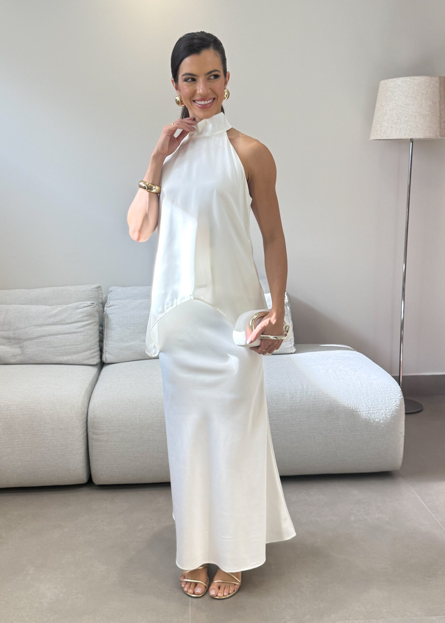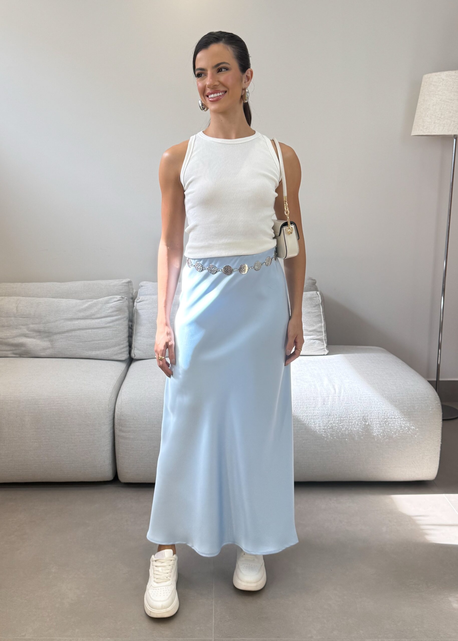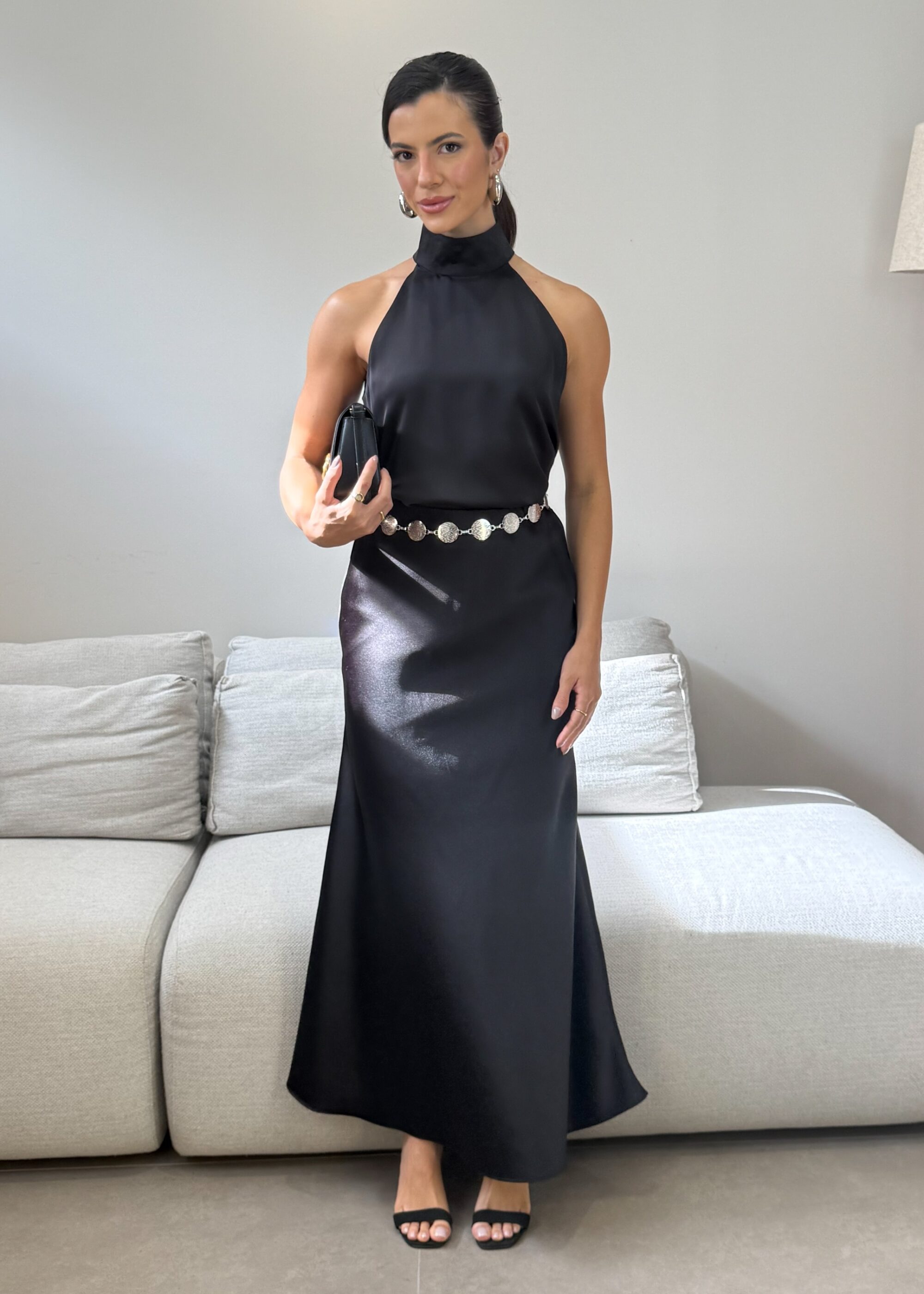 A Saia Maju possui um modelagem leve e fluida, com tecido acetinado que deixa um toque de sofisticação. Possui fechamento com zíper invisível que garante um acabamento impecável. Uma Saia coringa em seu guarda-roupas, perfeita para diversas ocasiões e combinações.