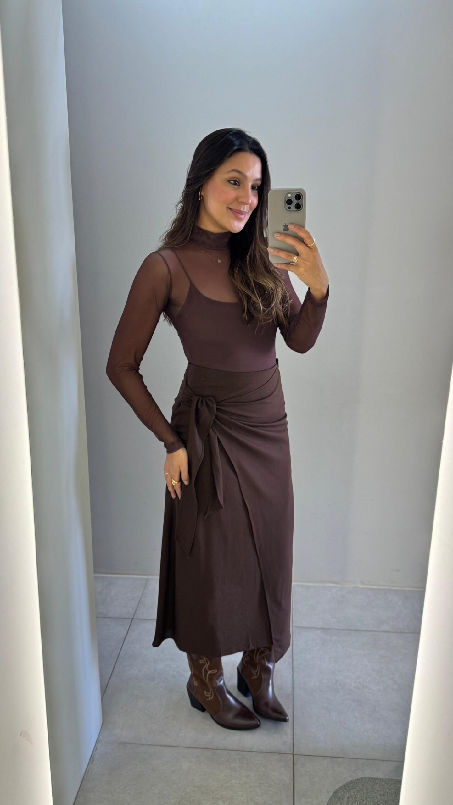 A saia midi linho é uma peça que vai te conquistar. Com amarração lateral, comprimento midi e modelagem transpassada, ela é uma peça curinga e combina fácil com diferentes estilos. O tecido em linho garante um caimento mais estruturado e super confortável. Ideal para quem gosta de se vestir bem sem esforço. Uma saia com beleza incomparável, leve e versátil para usar o ano inteiro.