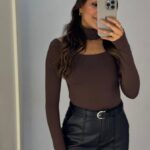 Modelo usa tamanho P.