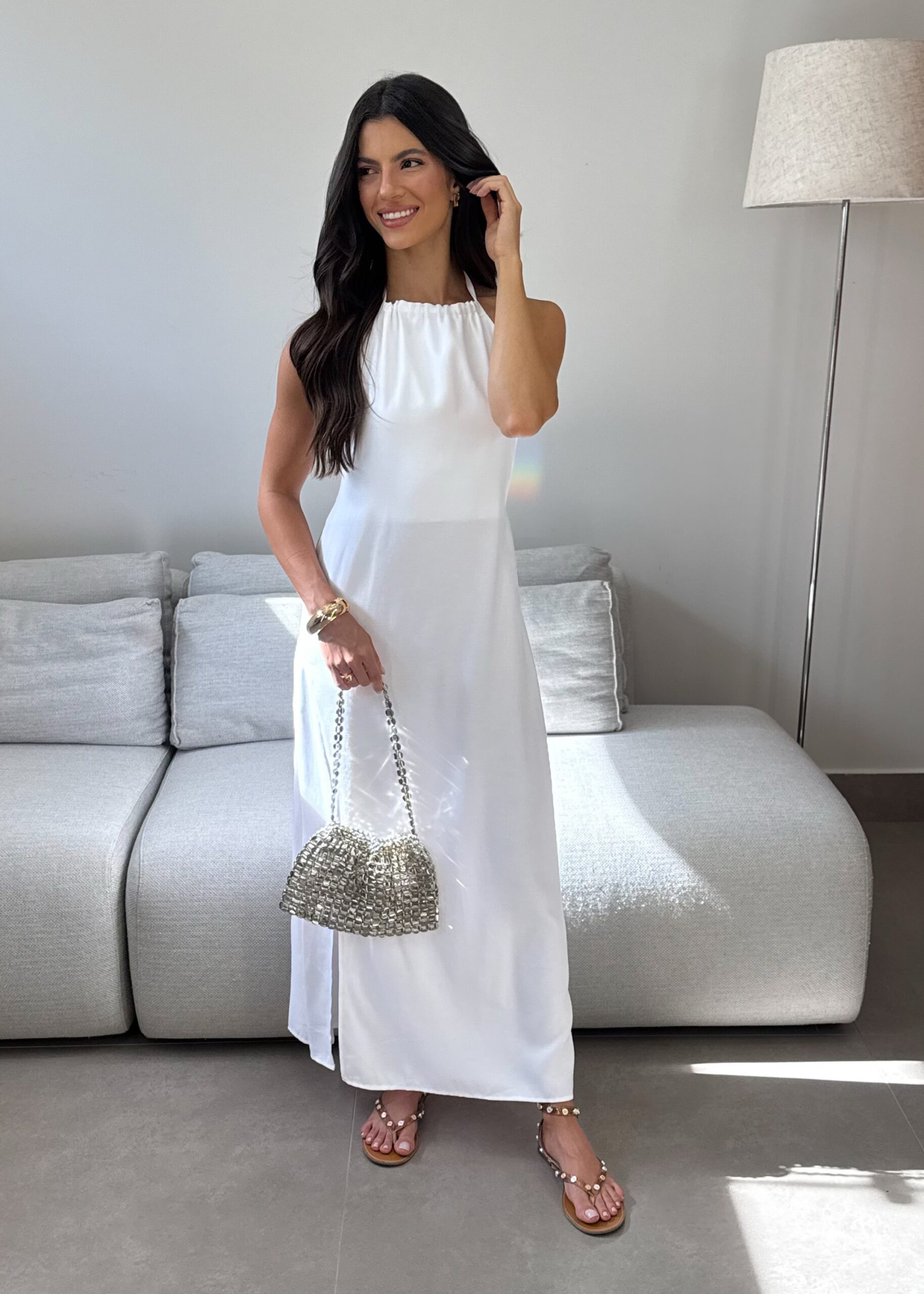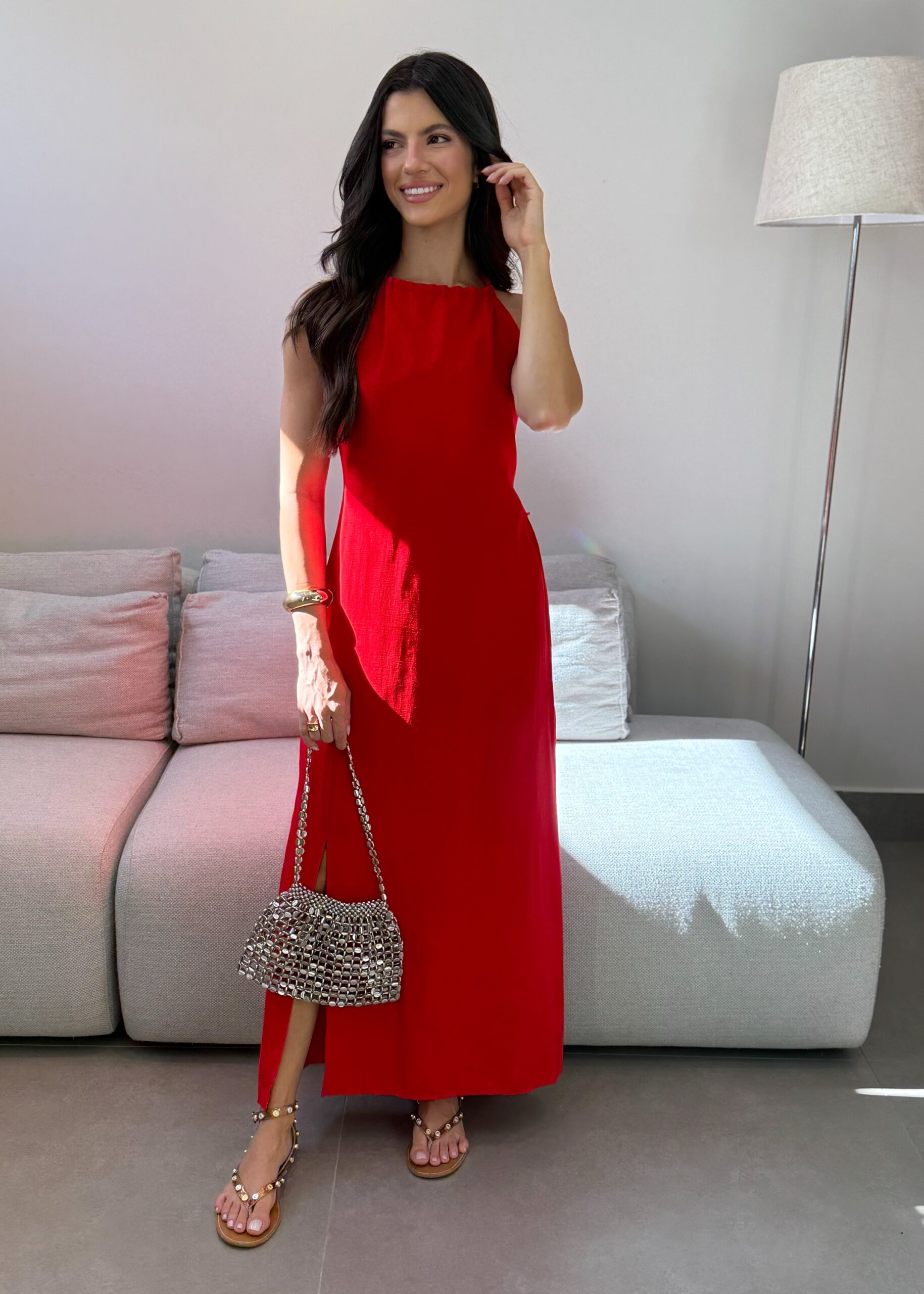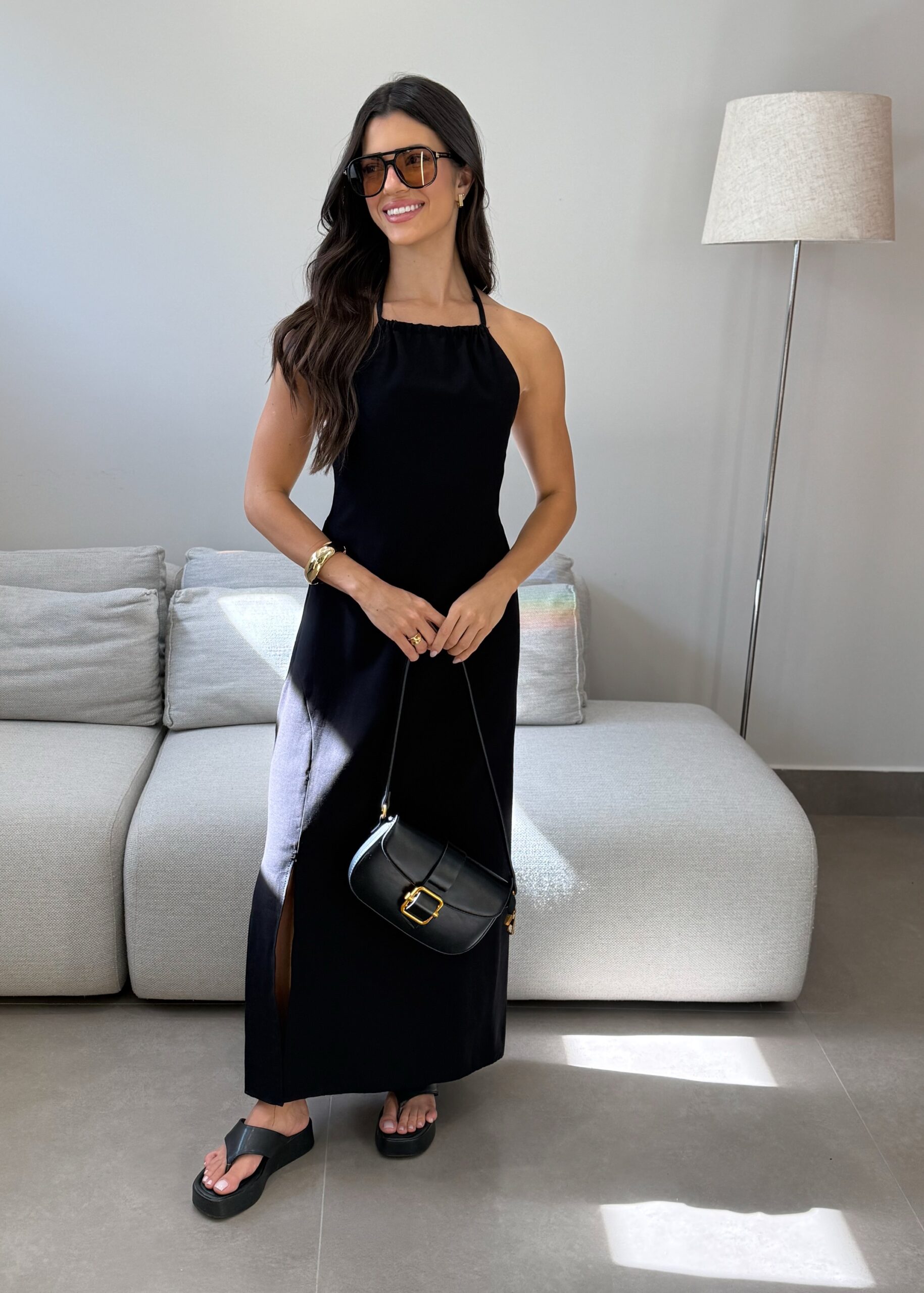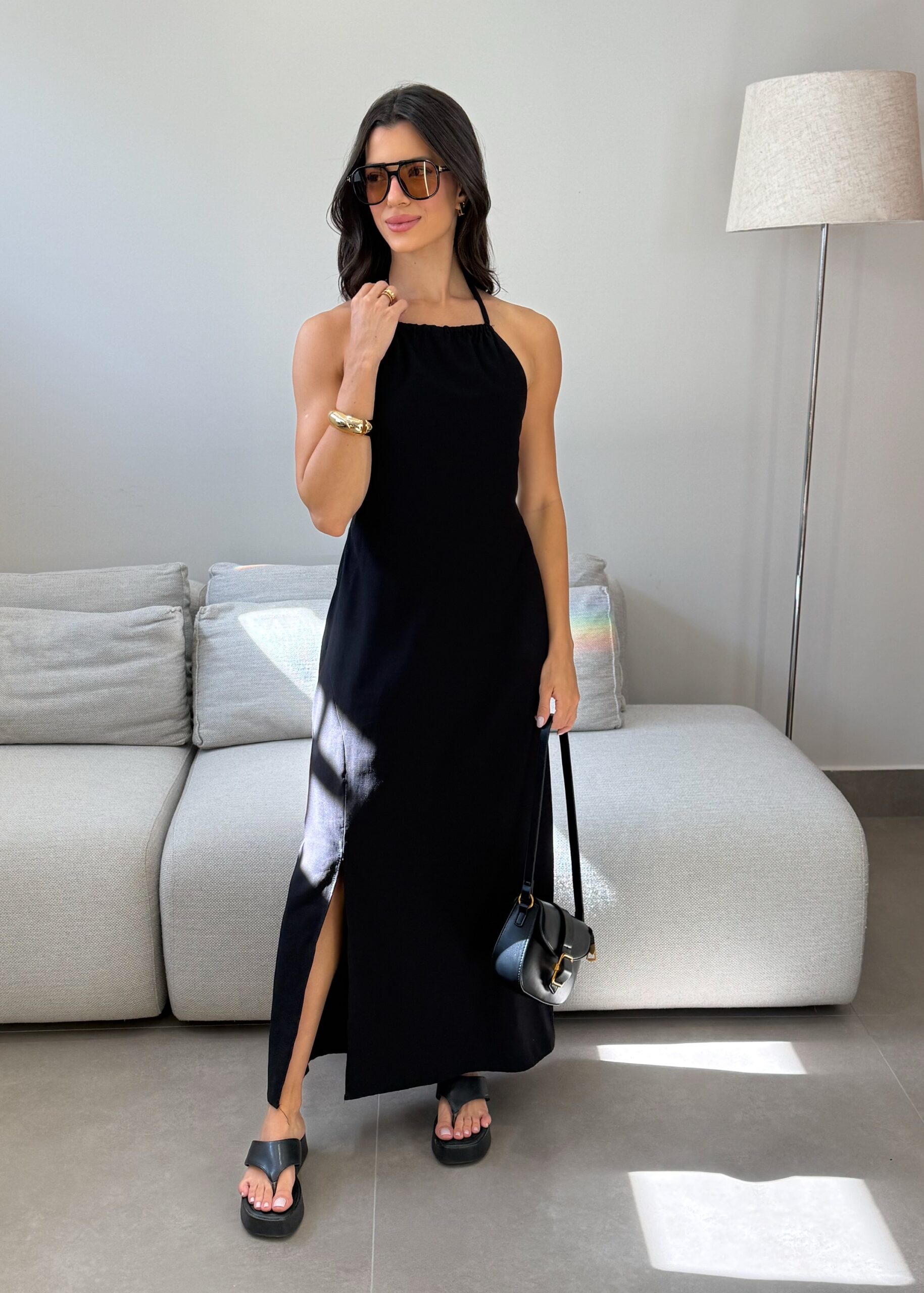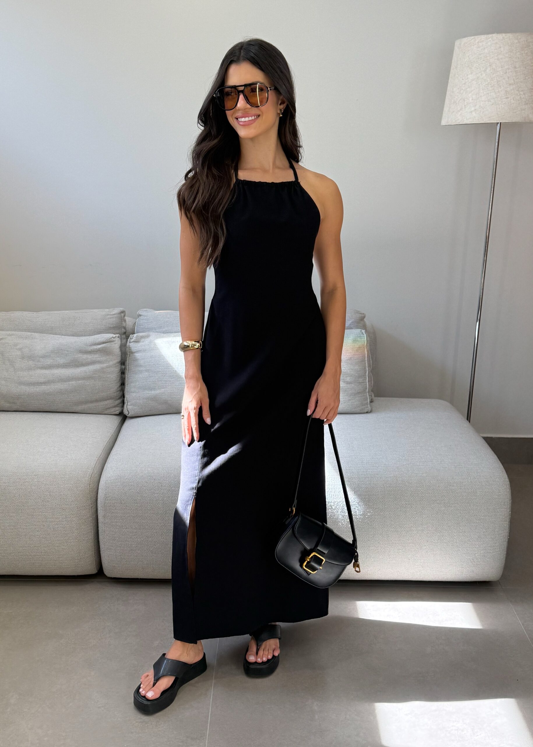 Sabe aquele Vestido básico mas que entrega beleza? É o nosso Vestido Carol. Ele possui modelo frente única, com amarração no pescoço e lastex nas costas para um caimento confortável. Possui uma leve fenda frontal, que é o charme extra do vestido e comprimento midi. Um vestido lindo e confortável para você apostar em qualquer ocasião.