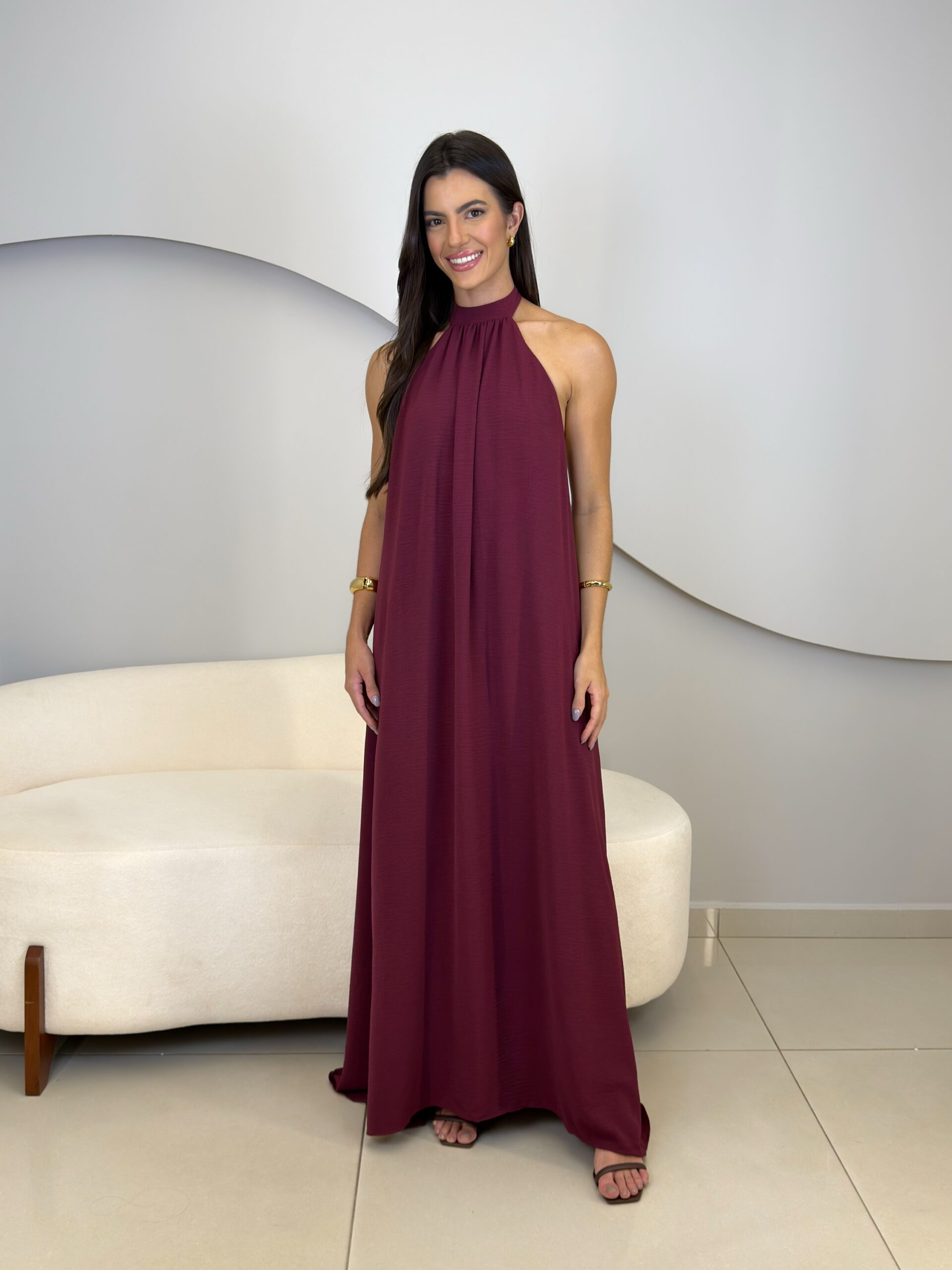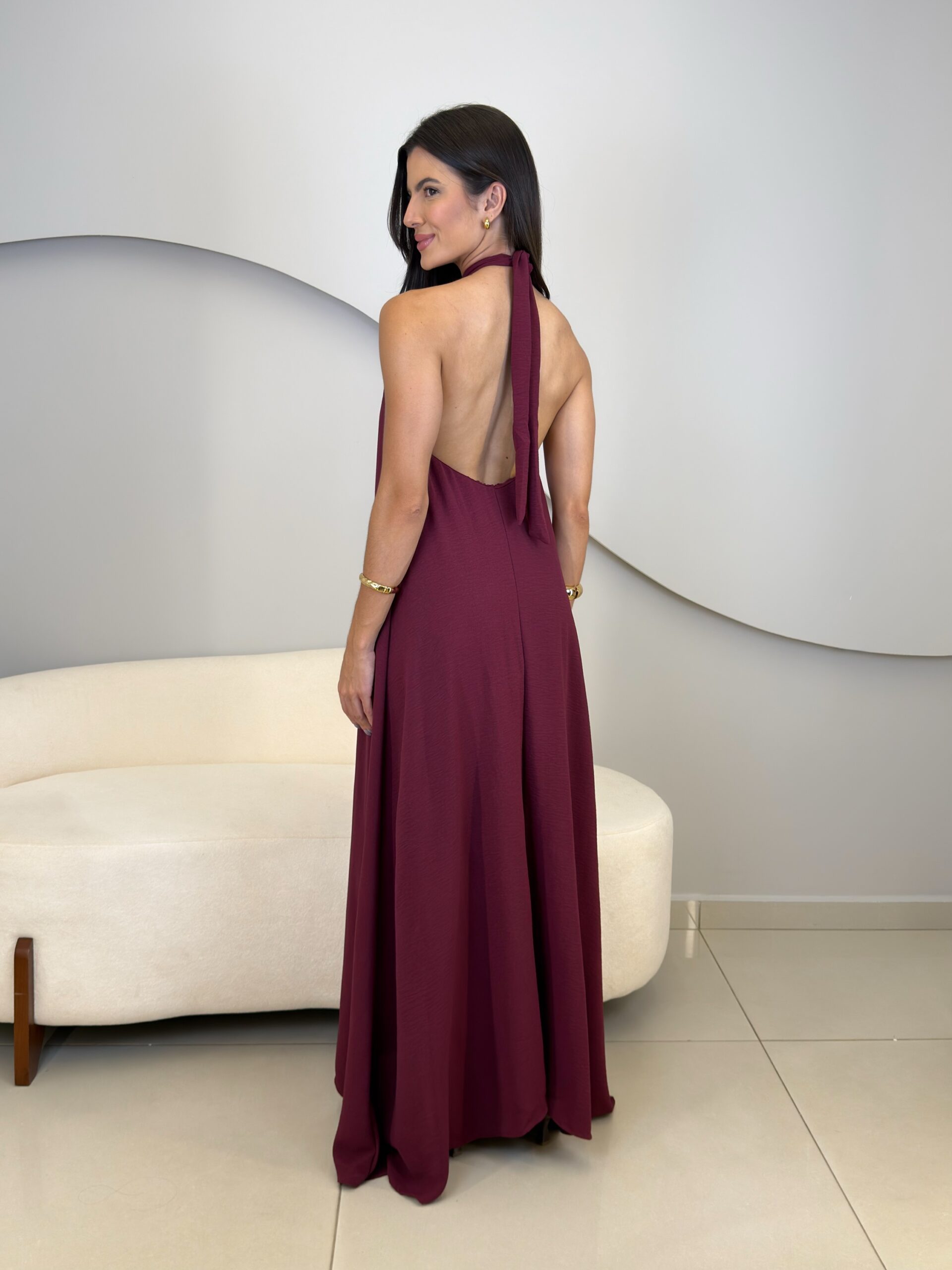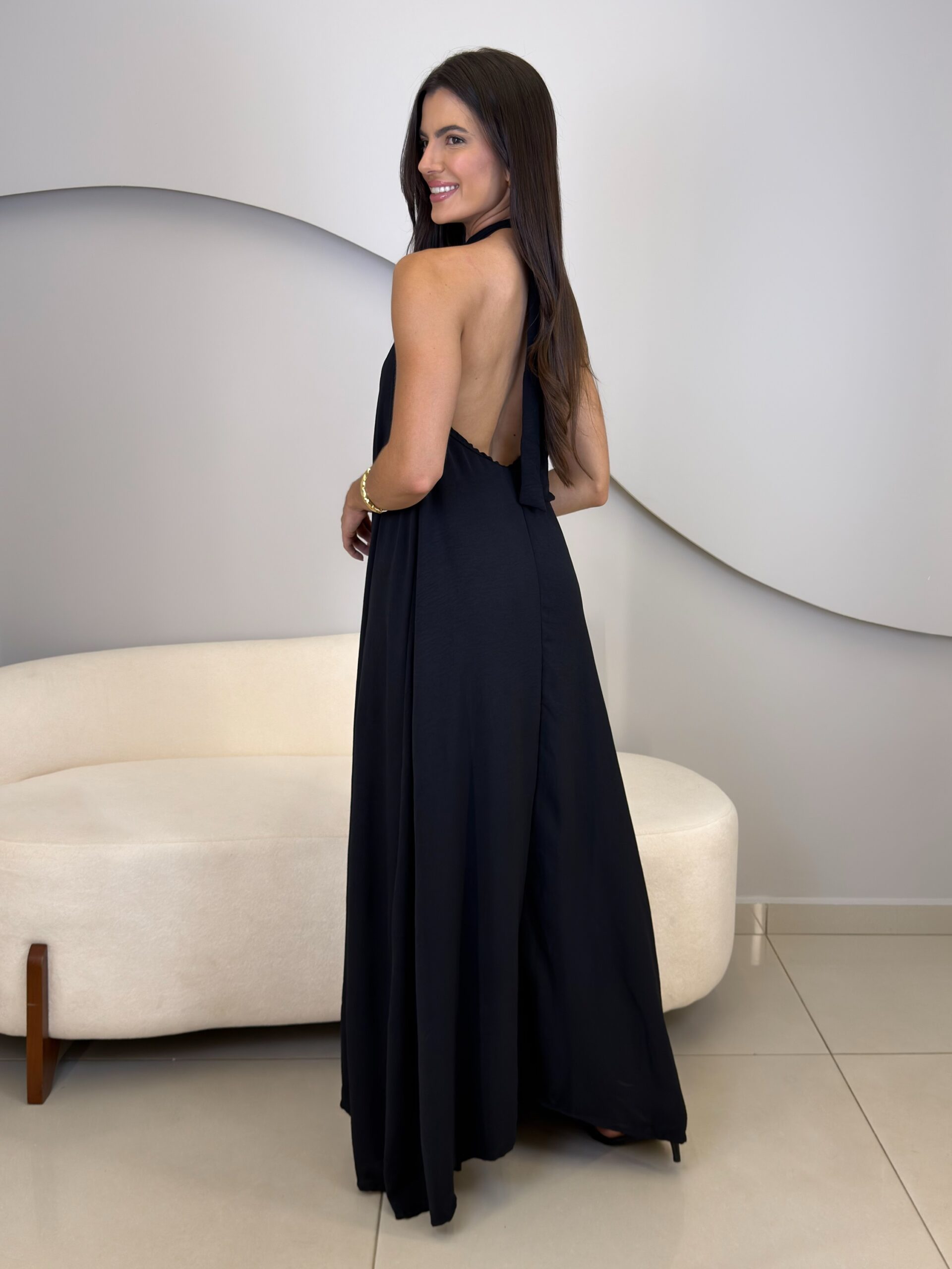 O vestido Cecília possui um design moderno e elegante, o modelo frente única destaca os ombros e o pescoço, criando uma silhueta sofisticada. Possui forro, amarração no pescoço, costas abertas com elástico que se ajusta ao corpo. Confeccionado em tecido leve e fluido, que proporciona movimento e um caimento impecável.