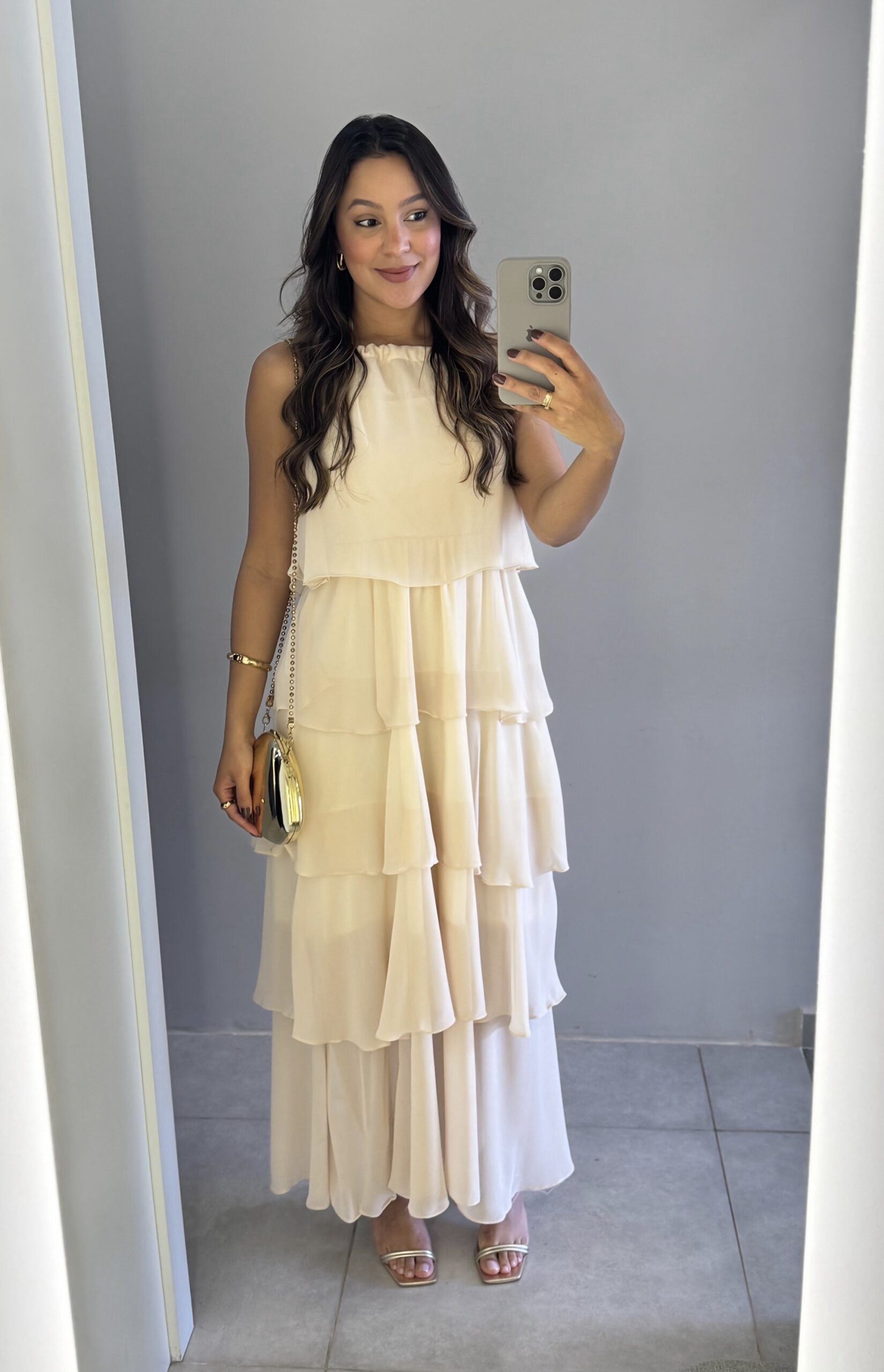 O Vestido Ivy é a definição de perfeição. Com recortes de babados delicados e uma elegante gola alta, ele combina modernidade e romantismo em uma única peça. O destaque fica para o leve decote aberto nas costas, que garante todo charme do vestido. Possui forro e elástico na parte de trás para facilitar na hora de vestir. Ideal para eventos especiais. Uma escolha perfeita para exalar beleza, confiança e estilo.