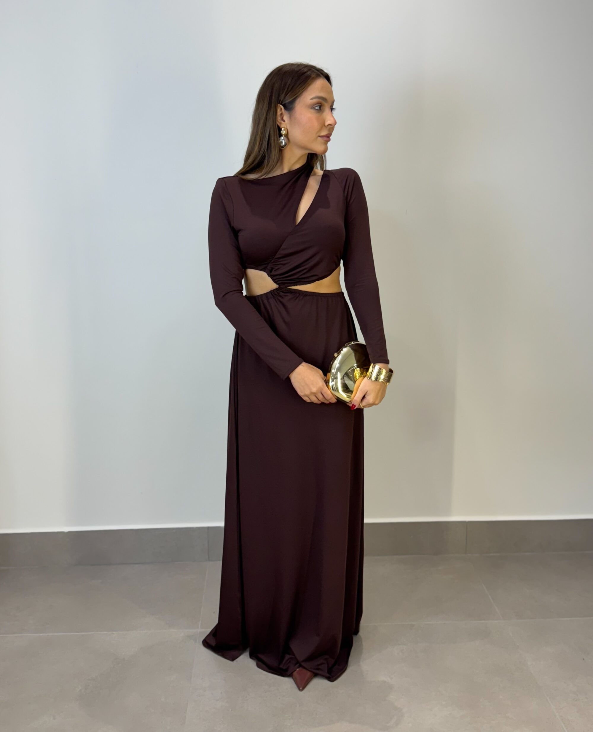 O Vestido Virginia é uma peça deslumbrante que transmite elegância e sofisticação. Confeccionado em poliamida de alta qualidade, possui um caimento impecável que valoriza a silhueta através dos recortes estratégicos nas laterais, que adicionam um toque moderno e sensual na medida certa. As mangas longas equilibram o visual, tornando-o ideal para ocasiões especiais como formaturas, festas e eventos formais. Um modelo que une conforto e estilo, perfeito para quem deseja se destacar com classe.