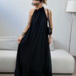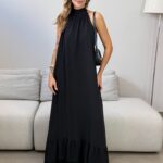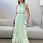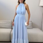 O Vestido Maiara traz com ele beleza em cada detalhe. Ele é um modelo longo e amplo, com gola alta, possui forro e leve camadas de babados na barra. Ele acompanha faixa, permitindo duas propostas de uso, ele mais solto e fluido, ou acinturado, trazendo uma modelagem mais clássica. Um vestido atemporal e elegante, perfeito para quem deseja estar impecável em todos os detalhes.