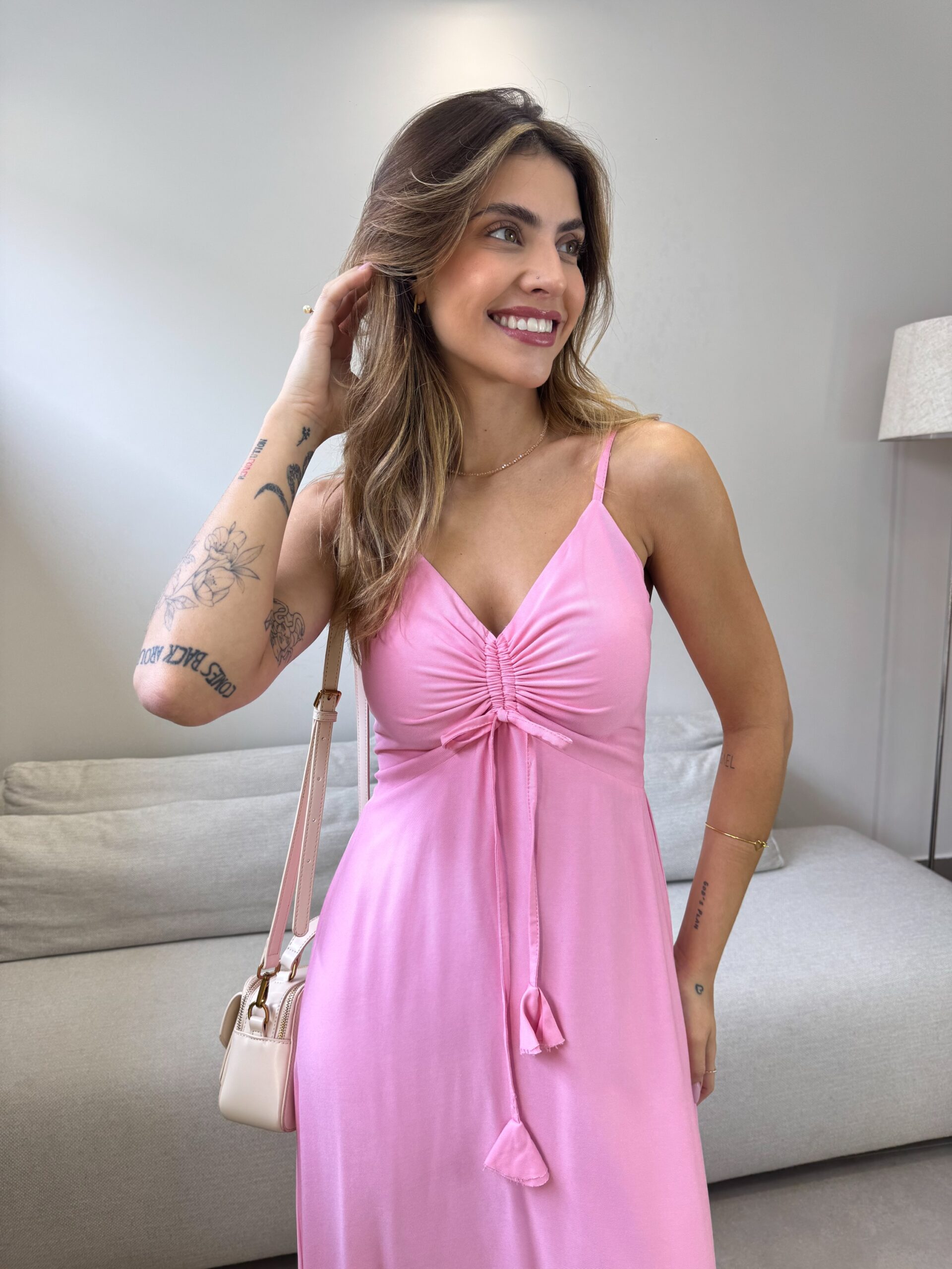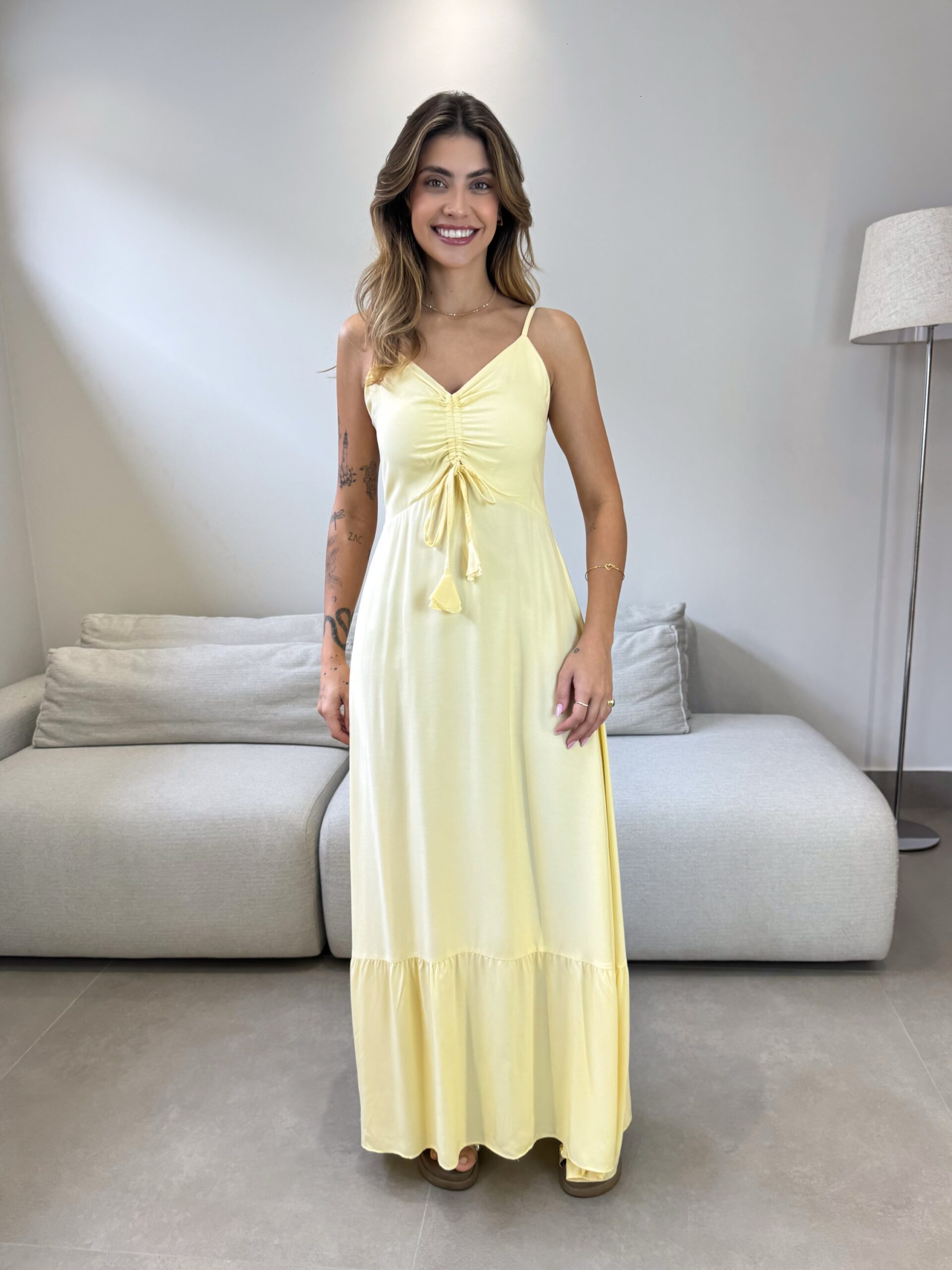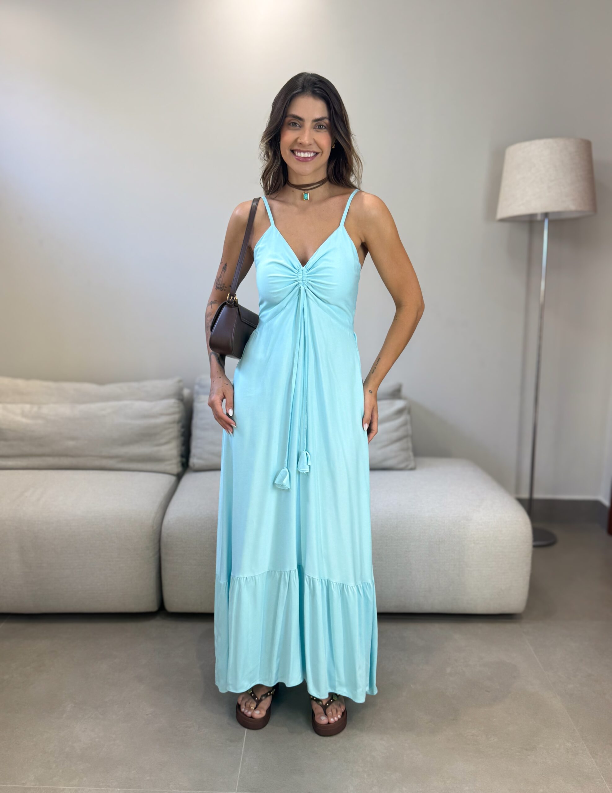 O Vestido Mariana possui alças finas com regulagem, detalhe no busto ajustável e lastex na parte de trás, que da todo o conforto ao vestir. O detalhe franzido adiciona um charme extra ao vestido, que tem um movimento leve e elegante. Perfeito para o seu verão ficar ainda mais estiloso.