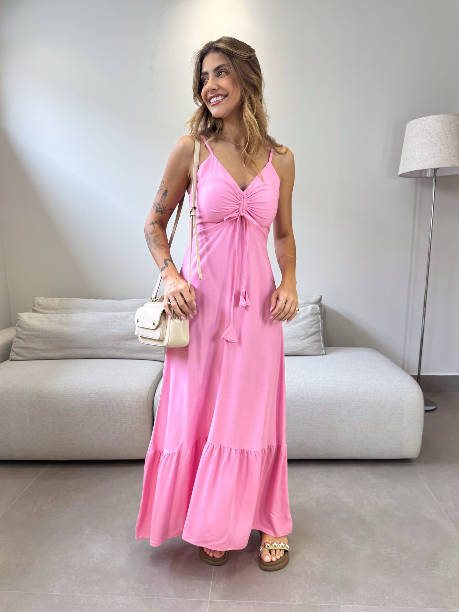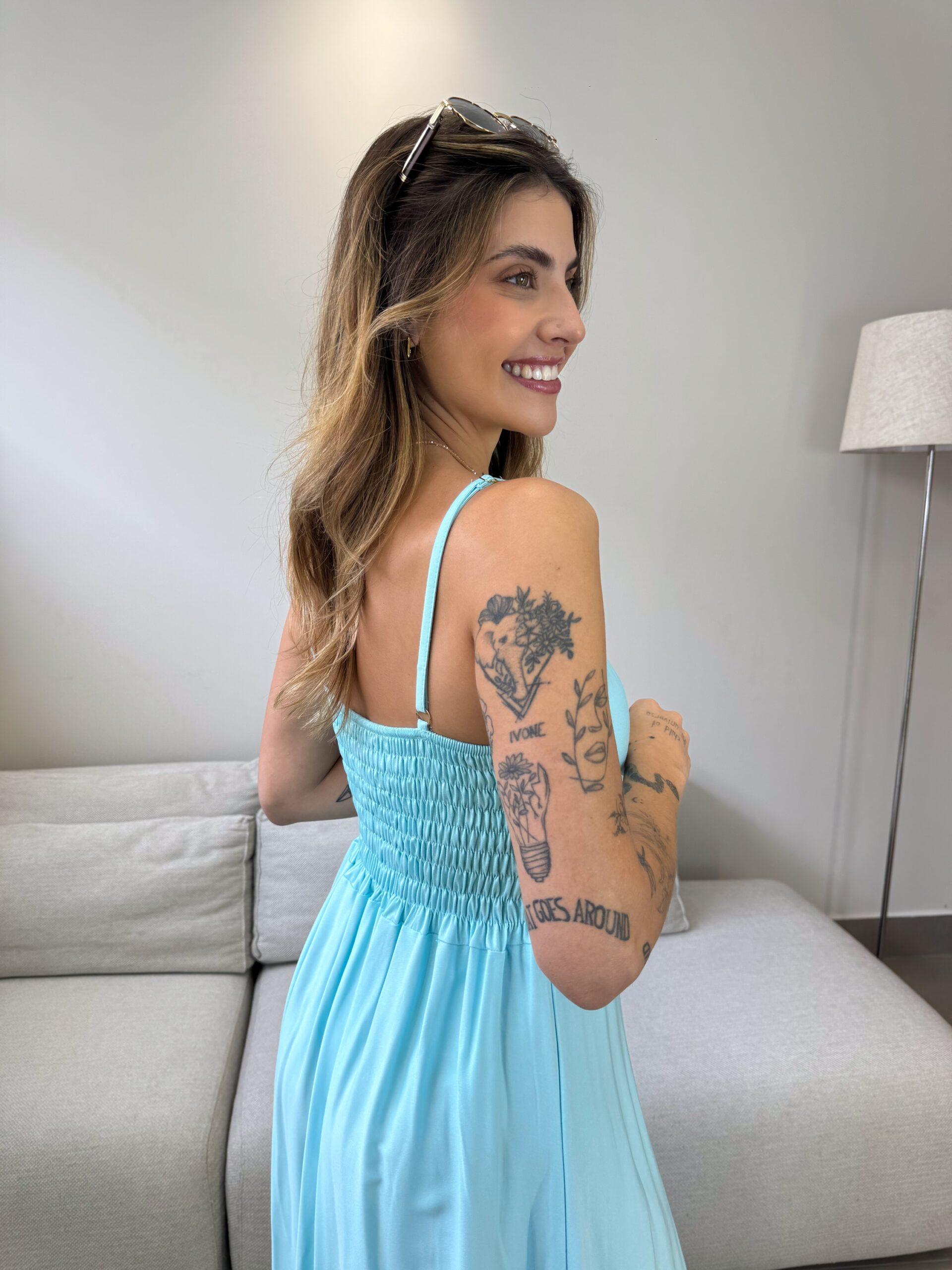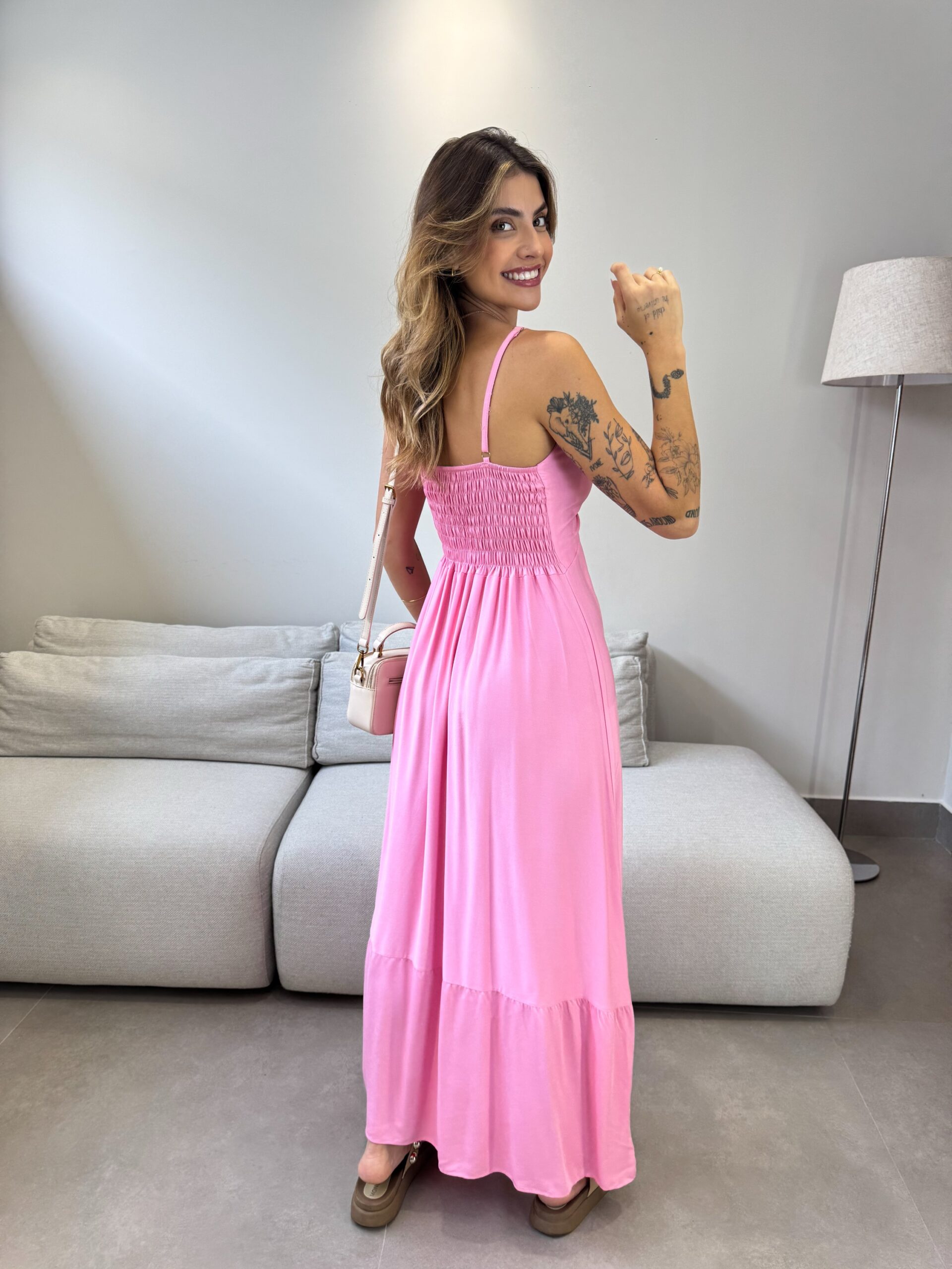 O Vestido Mariana possui alças finas com regulagem, detalhe no busto ajustável e lastex na parte de trás, que da todo o conforto ao vestir. O detalhe franzido adiciona um charme extra ao vestido, que tem um movimento leve e elegante. Perfeito para o seu verão ficar ainda mais estiloso.
