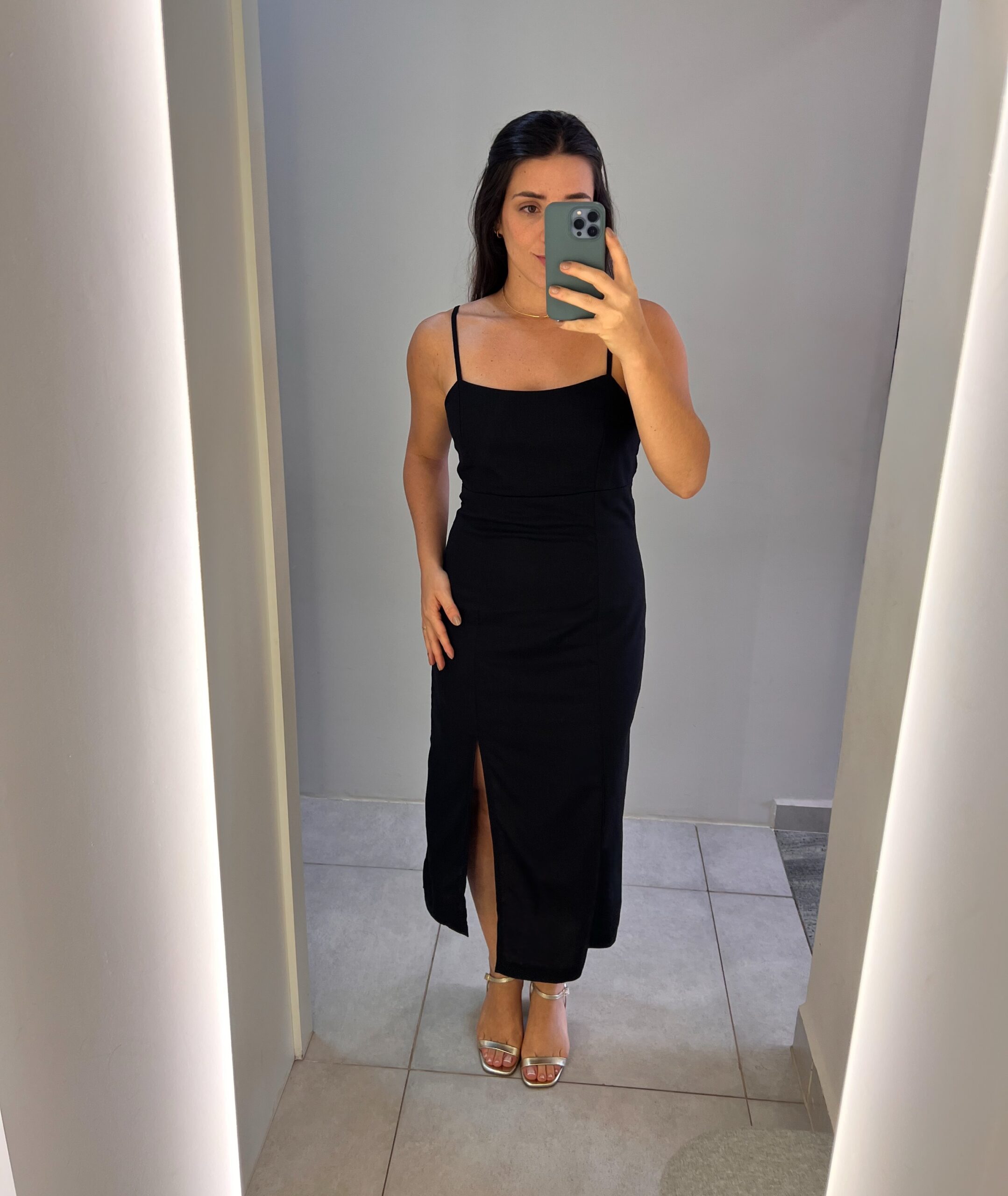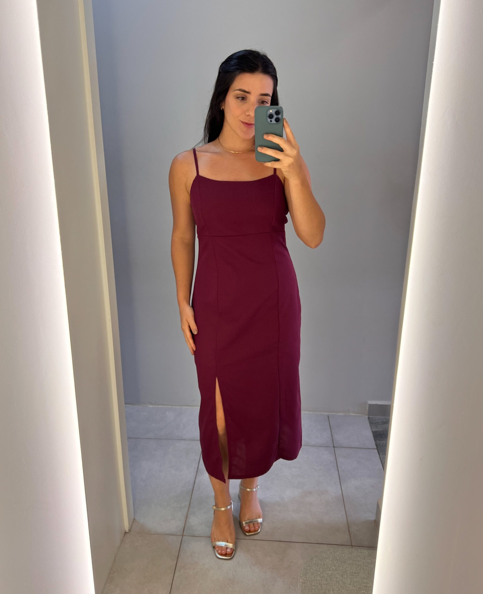 O Vestido Midi Basic é leve e ideal para qualquer ocasião. Possui forro, alcinha com regulagem e fecho com zíper invisível na parte de trás. Possui leve fenda, dando um charme a peça. Aposte para se sentir sempre linda e confortável.